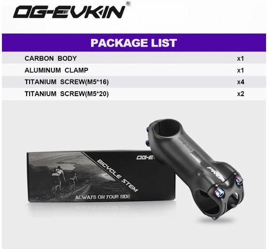 OG-EVKIN BS-004 Pro+ T1000 Carbon Stem 10 Degree 31.8MM Titanium Road Bike Stem Positive and Negative Cycling MTB Bicycle Parts