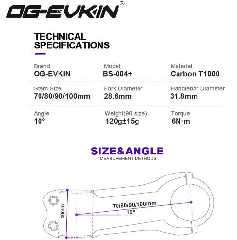 OG-EVKIN BS-004 Pro+ T1000 Carbon Stem 10 Degree 31.8MM Titanium Road Bike Stem Positive and Negative Cycling MTB Bicycle Parts